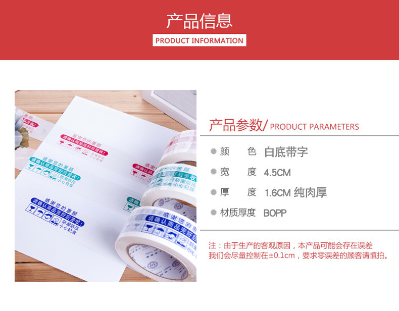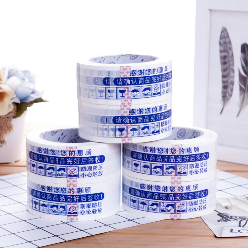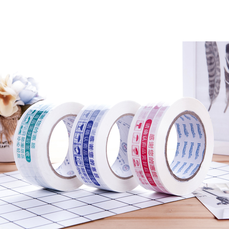 印字封箱膠帶,可以起到警示作用,也可以宣傳企業(yè)品牌。顏色分為紅、綠、藍(lán)三種。